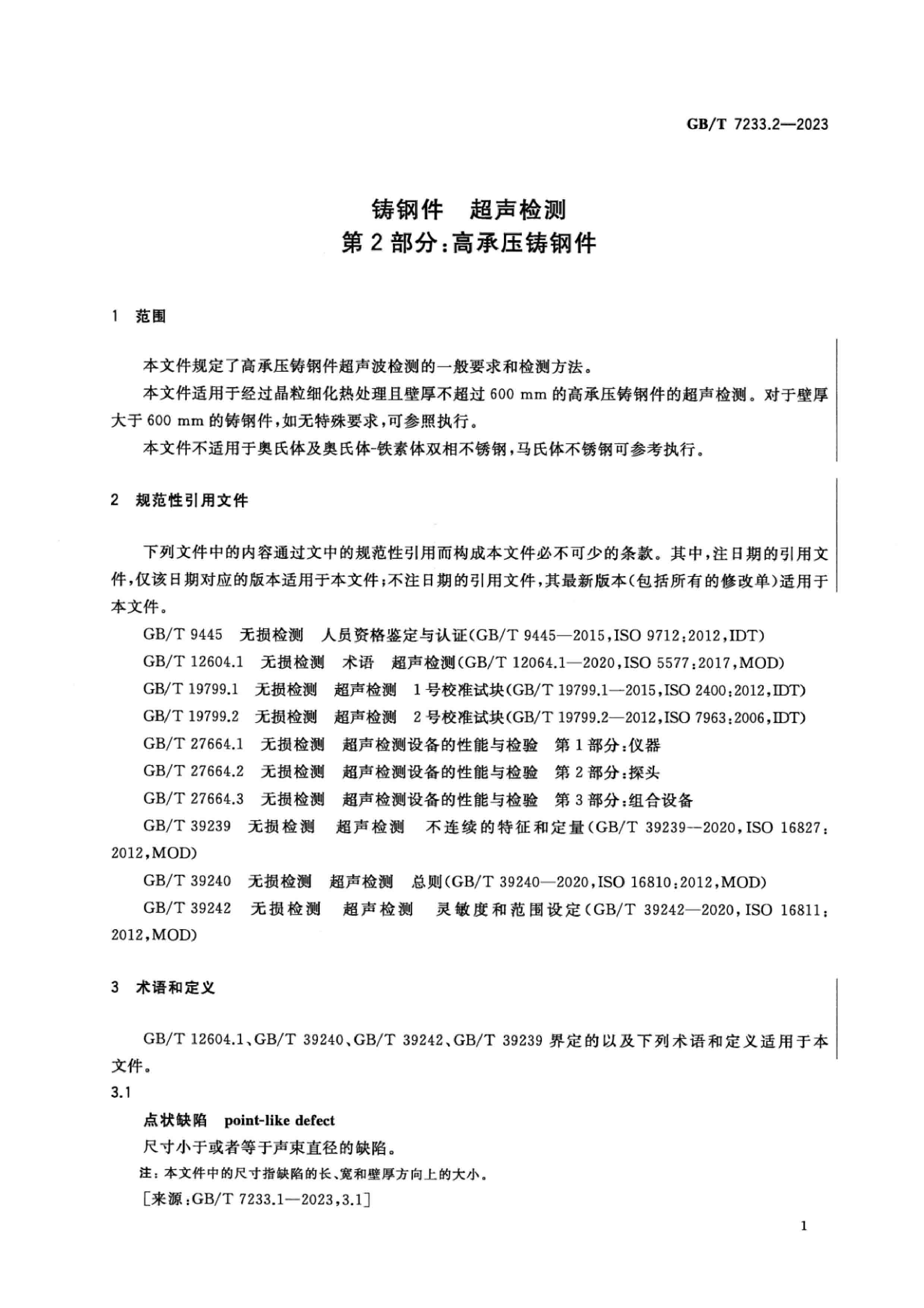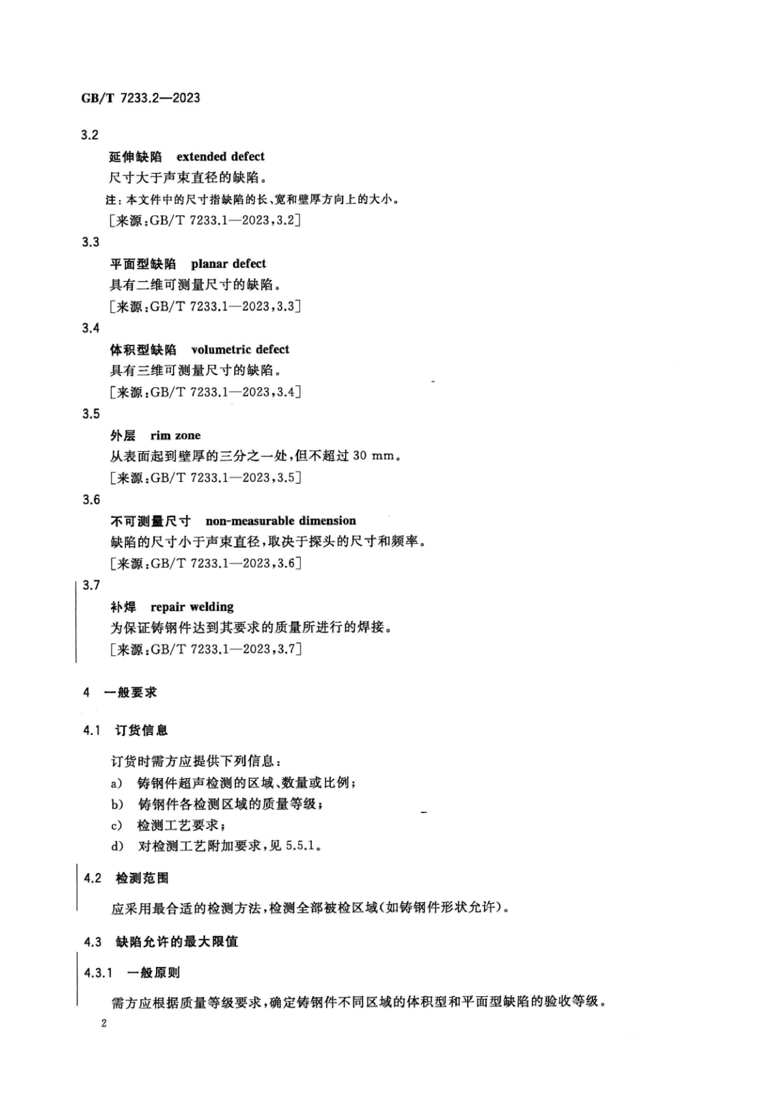 GBT 7233.2-2023 铸钢件 超声检测 第2部分:高承压铸钢件