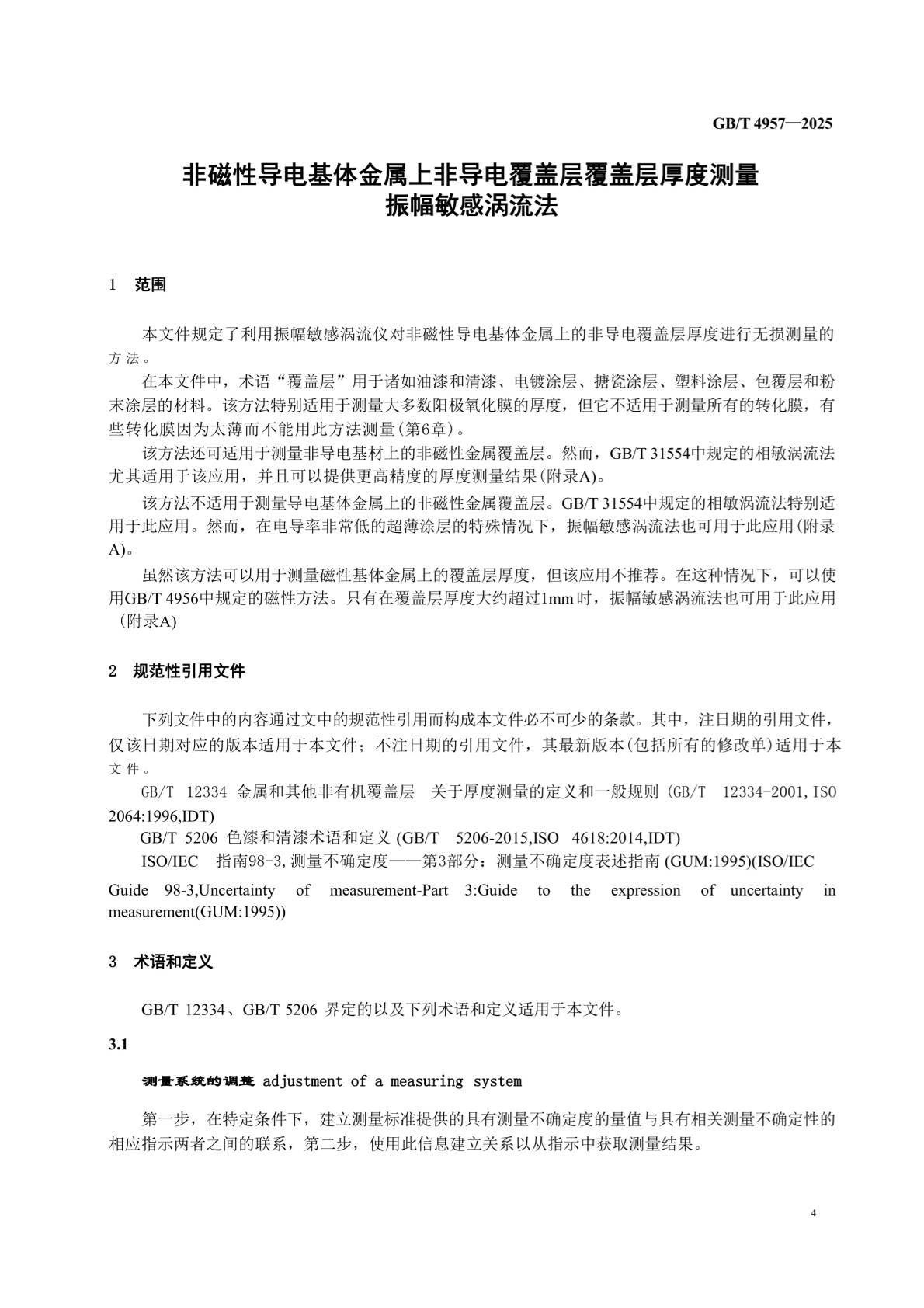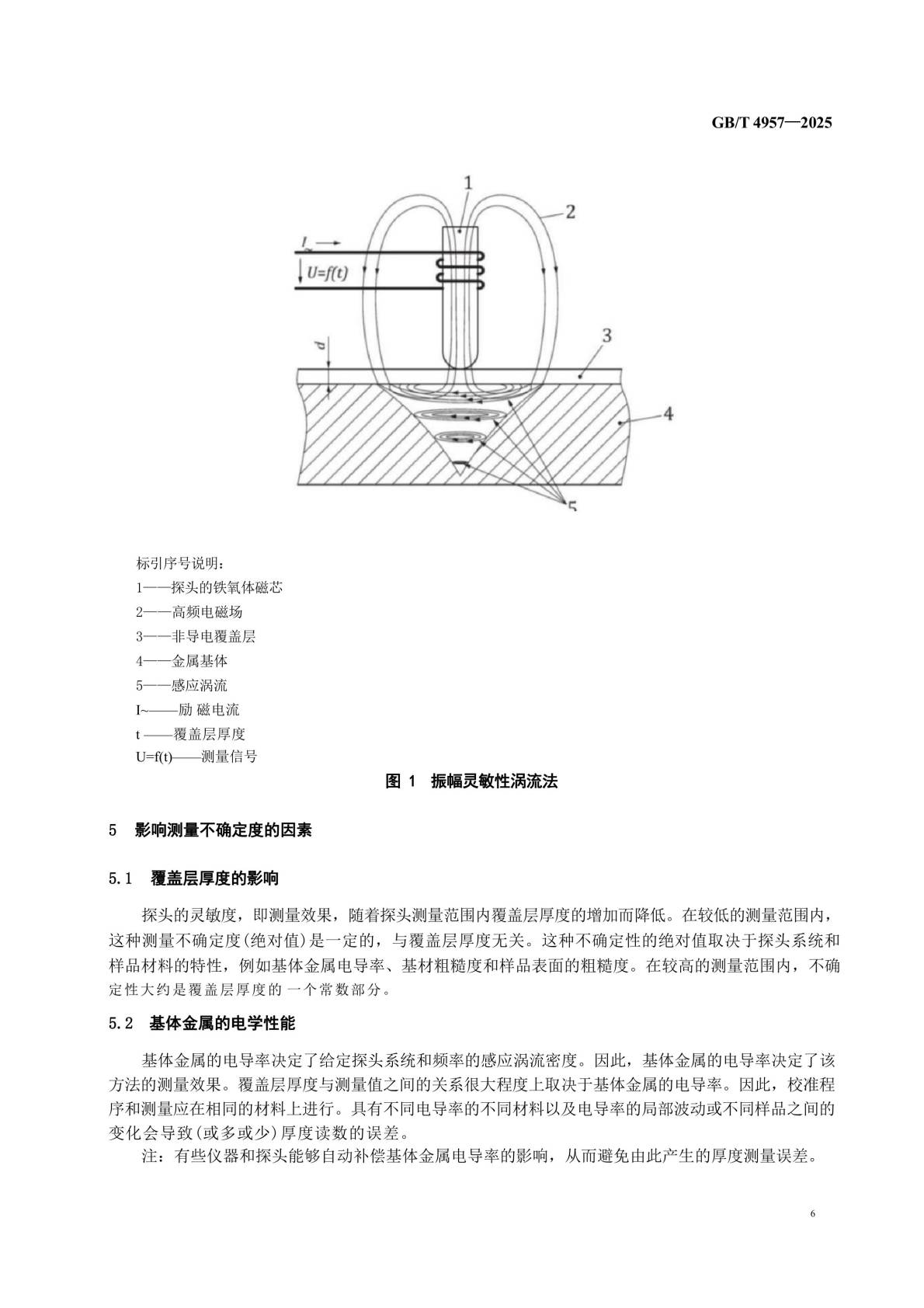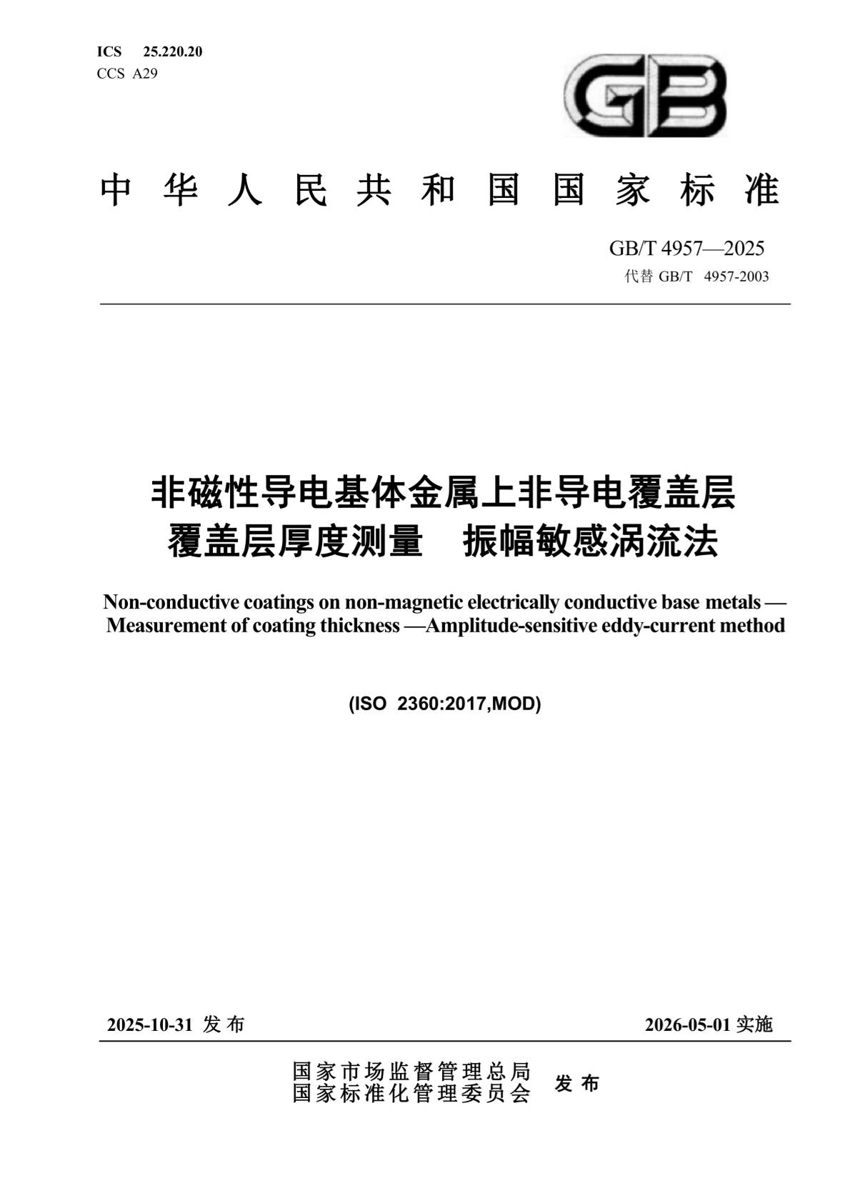 GB_T 4957-2025《非磁性导电基体金属上非导电覆盖层 覆盖层厚度测量 振幅敏感涡流法》